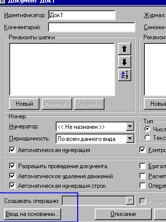 Здесь можно указать основанием для какого документа он может быть. У меня для документа Док1 и Док2. Я решил, что нужно сделать так, Док2 будет вводиться на основе Док1. В настройках это все. | | Автор .